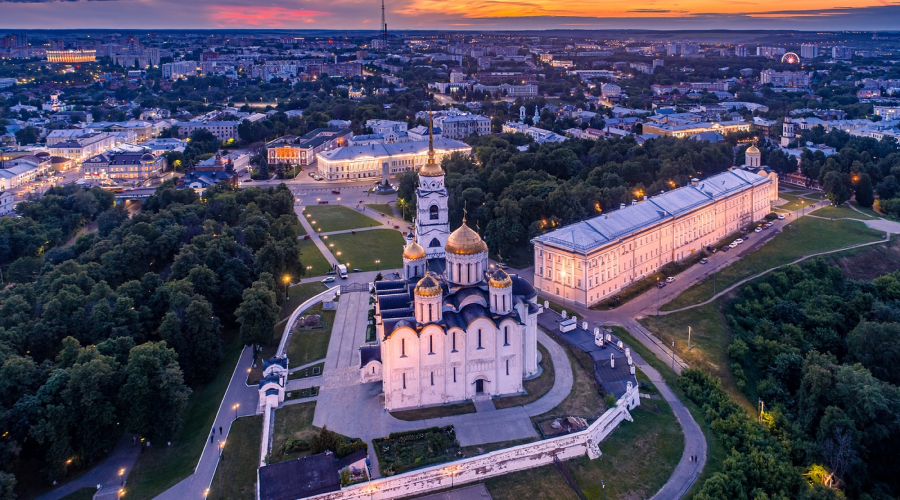 Владимир – древняя столица Северо-Восточной Руси. Мы увидим Золотые ворота – символ величия и мощи Древней Руси, оборонительный земляной вал, главный храм Северо-Восточной Руси — Успенский собор – шедевр белокаменного зодчества, в котором сохранились фрески Андрея Рублева и каменные кружева Дмитриевского собора – памятник Владимиро-Суздальской архитектуры домонгольского периода. Также на нашем маршруте будут попадаться церкви с интересной историей, пешеходная улица, парки, скверы и места, где в разное время работали археологи. Кроме этого по пути мы встретим массу любопытных памятников, как известным деятелям, так и обычным горожанам.