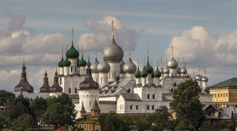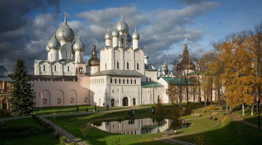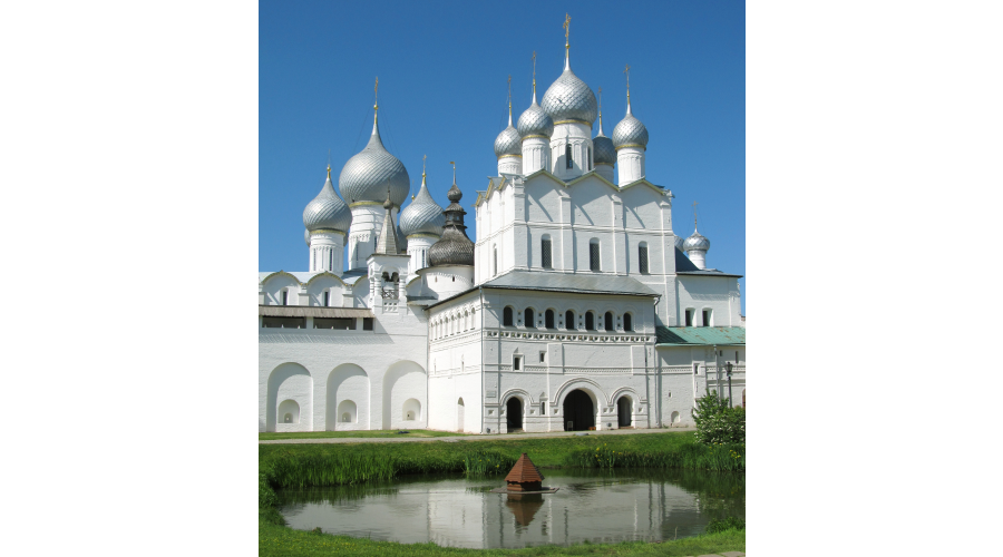 Ростовский кремль – величественное каменное укрепление в старинном городе Ростове Великом. Территория кремля расположена в историческом центре, на небольшой возвышенности, недалеко от северо-западной оконечности озера Неро. Она очень красива и давно стала визитной карточкой древнего русского города. Белокаменные башни, мощные стены и купола церквей отлично вписаны в окружающий ландшафт. Многим силуэты храмов и башен Ростовского кремля знакомы по популярной комедии «Иван Васильевич меняет профессию». Украшением Ростовского кремля является Успенский собор (XVI в.) с уникальной звонницей, на которой полностью сохранился набор из 15 колоколов, Архиерейский двор, Соборная площадь и Митрополичий сад.