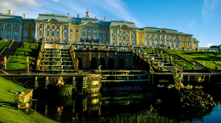 Величественный и изысканный, Большой петергофский дворец, чей фасад протянулся вдоль террасы почти на 300 метров, занимает доминирующее положение в композиции петергофского ансамбля, связывая в единое художественное целое Верхний сад и Нижний парк. «Раскинув крылья» над водяной феерией Большого каскада, он объединяет и формирует вокруг себя стройную систему аллей, архитектурных сооружений и фонтанов.