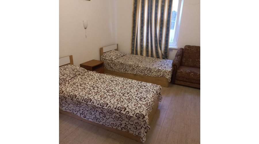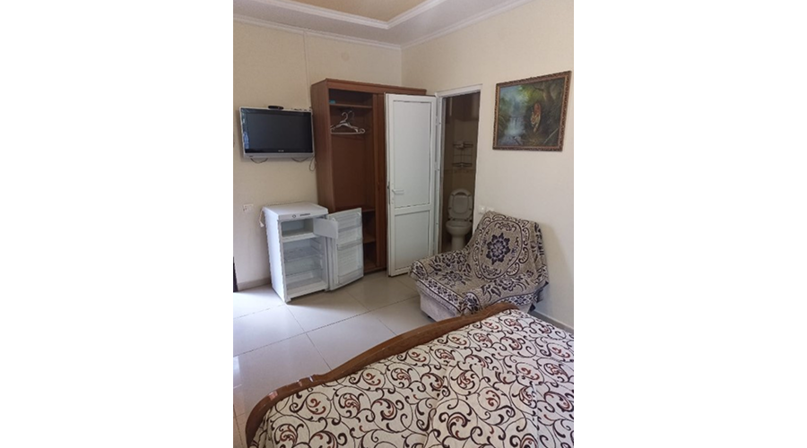 Каждая комната оборудована всем необходимым для вашего удобства: душ, туалет, кондиционер, холодильник, телевизор. Напротив каждого номера летняя мебель для отдыха. Все номера на 1 этаже