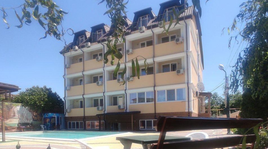 В гостинице «Таврида», Феодосия. Пансионат расположен в удобном месте — недалеко от автовокзала и железнодорожной станции Айвазовская. Из окон номеров открывается прекрасная панорама с видом на Феодосию и окружающие её горы, степи и море, которые формируют уникальный климат города, подобного которому нет ни в одном месте Крыма.