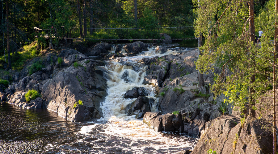 Конечно же, посетим главную достопримечательность — 11-метровый равнинный водопад Кивач на реке Суна. Он не самый высокий, но точно самый популярный у туристов! Выглядит водопад действительно впечатляюще: сжатые с двух сторон скалами, воды реки Суна обрушиваются вниз четырьмя каскадами. Кстати, Кивач – второй по величине равнинный водопад Европы.