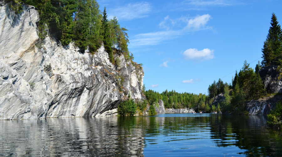 Горный парк «Рускеала» — это грунтовые воды изумрудного цвета, причудливые очертания отвесных скал, таинственные штольни и гроты. Здесь есть мраморный каньон — в конце XVIII века здесь добывали мрамор для дворцов Петербурга, а потом карьер постепенно наполнился естественными водами.